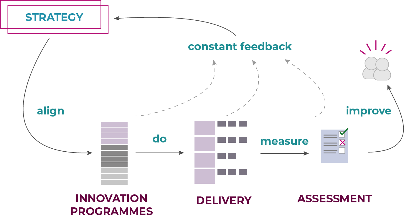 Aligning strategy with delivery programmes means working with you to understand the thinking behind strategies, and then taking a deep dive into what's already happening at a technical and operational level. We examine known success factors and barriers to the introduction of change and innovation to predict which efforts are likely to deliver the outcomes you're looking for. We also work with your leadership to establish success metrics like KPIs and OKRs, and to ensure that they're measurable given the reality on the ground.